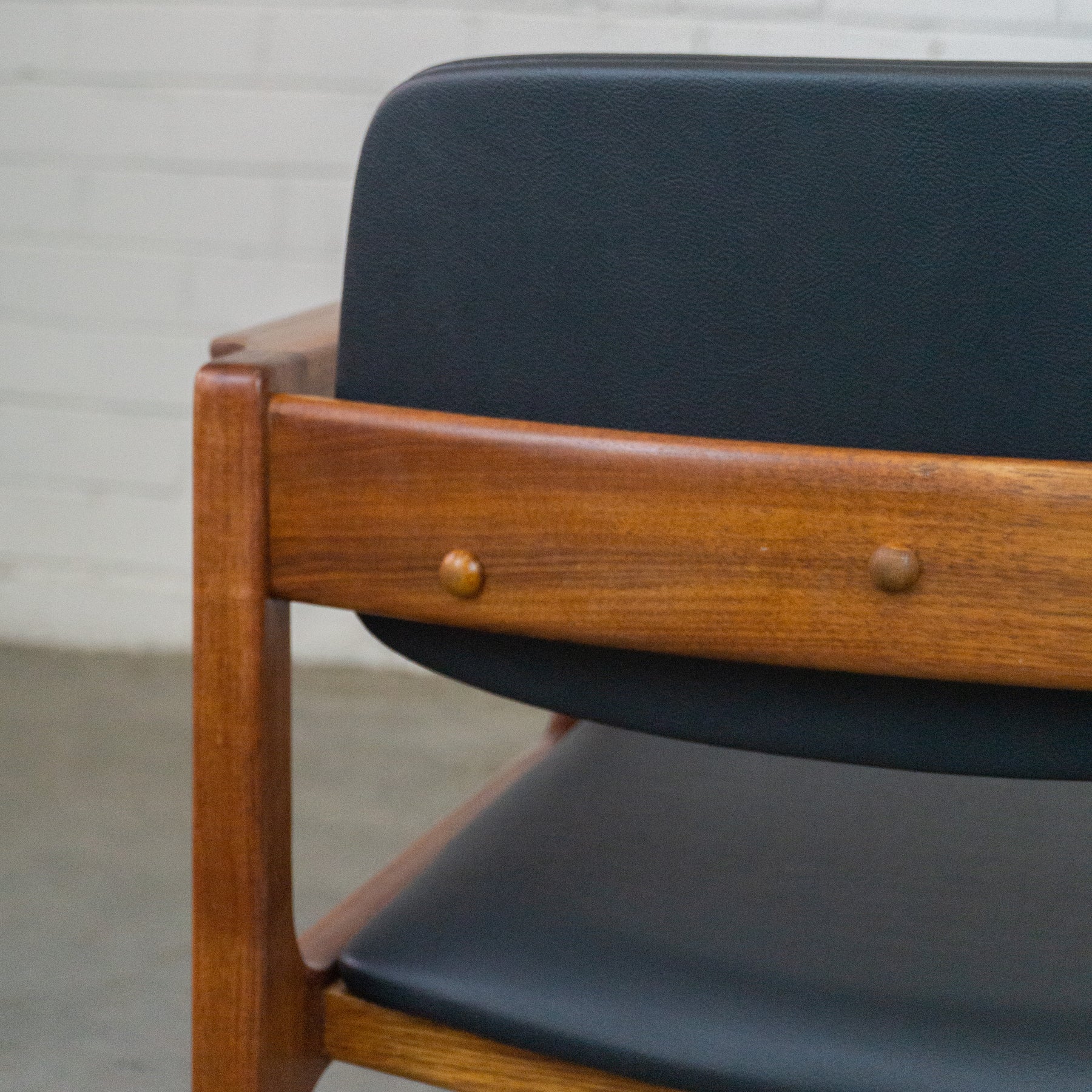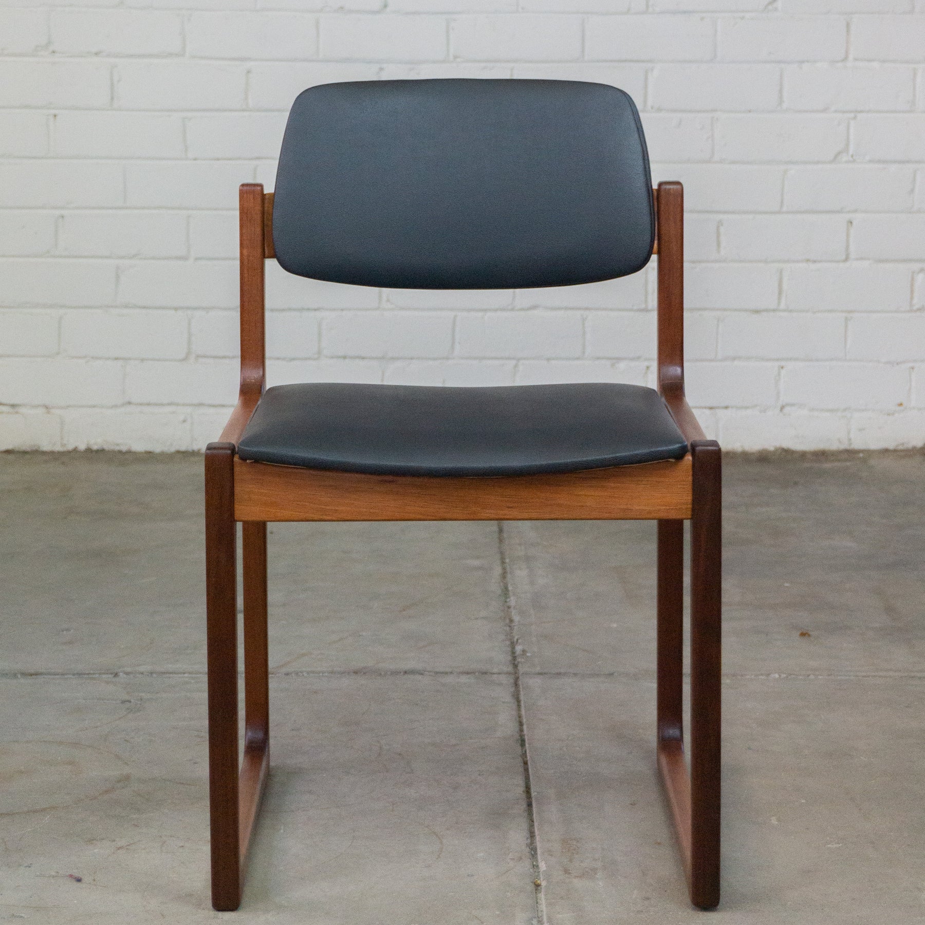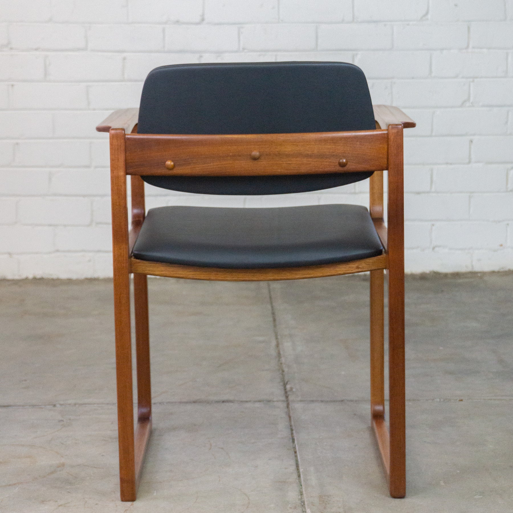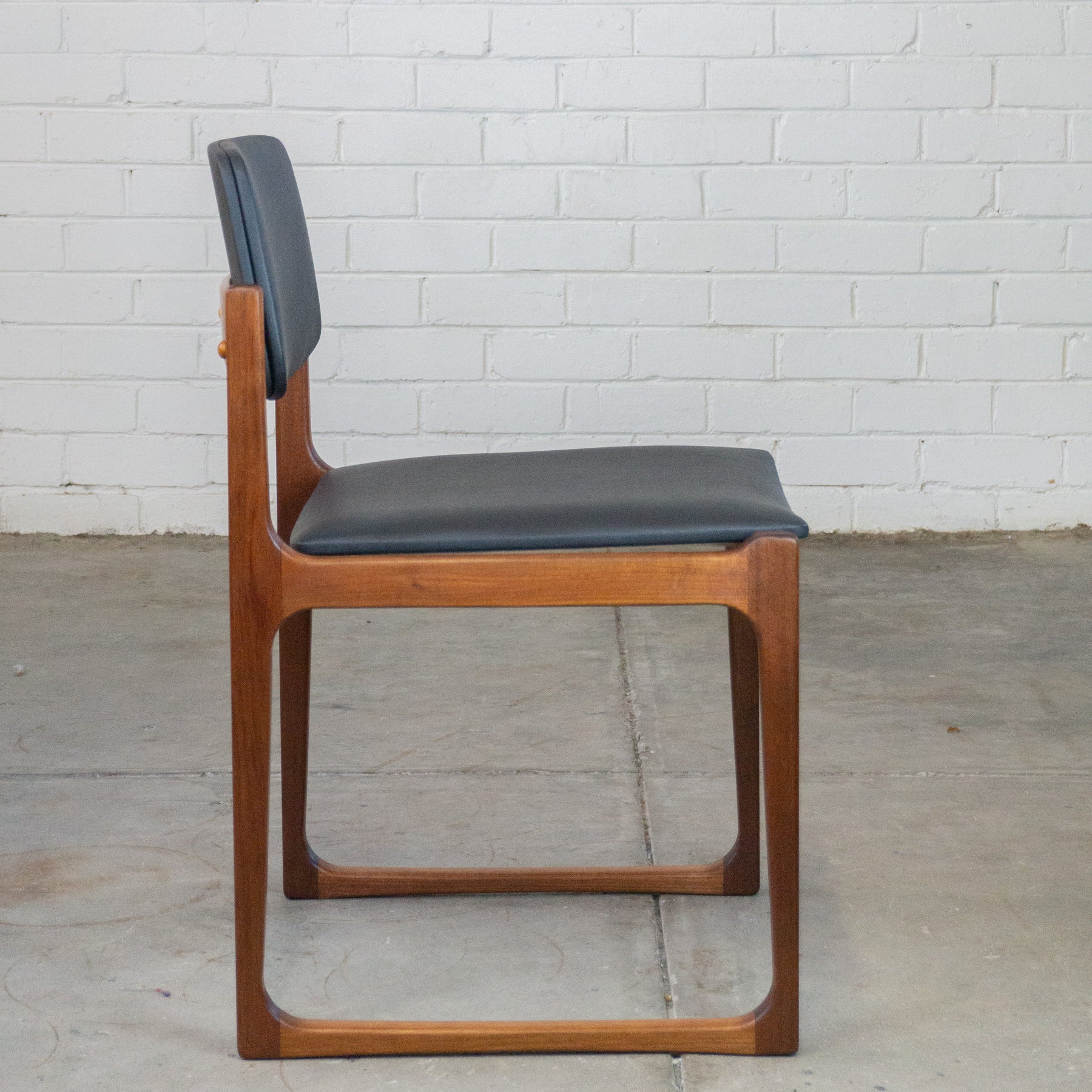 Mid-century dining chairs by award-winning designer Gerald Easden, This set features two carver chairs & 4 side chairs with a solid Blackwood frame & cushioned vinyl seat.