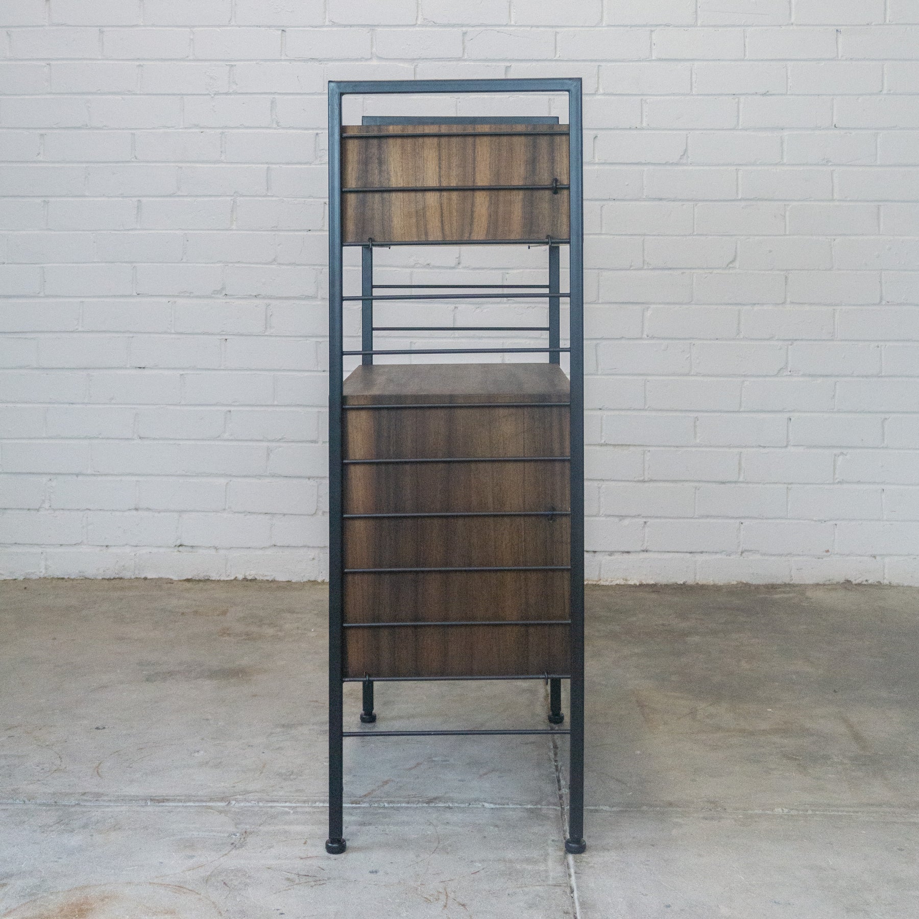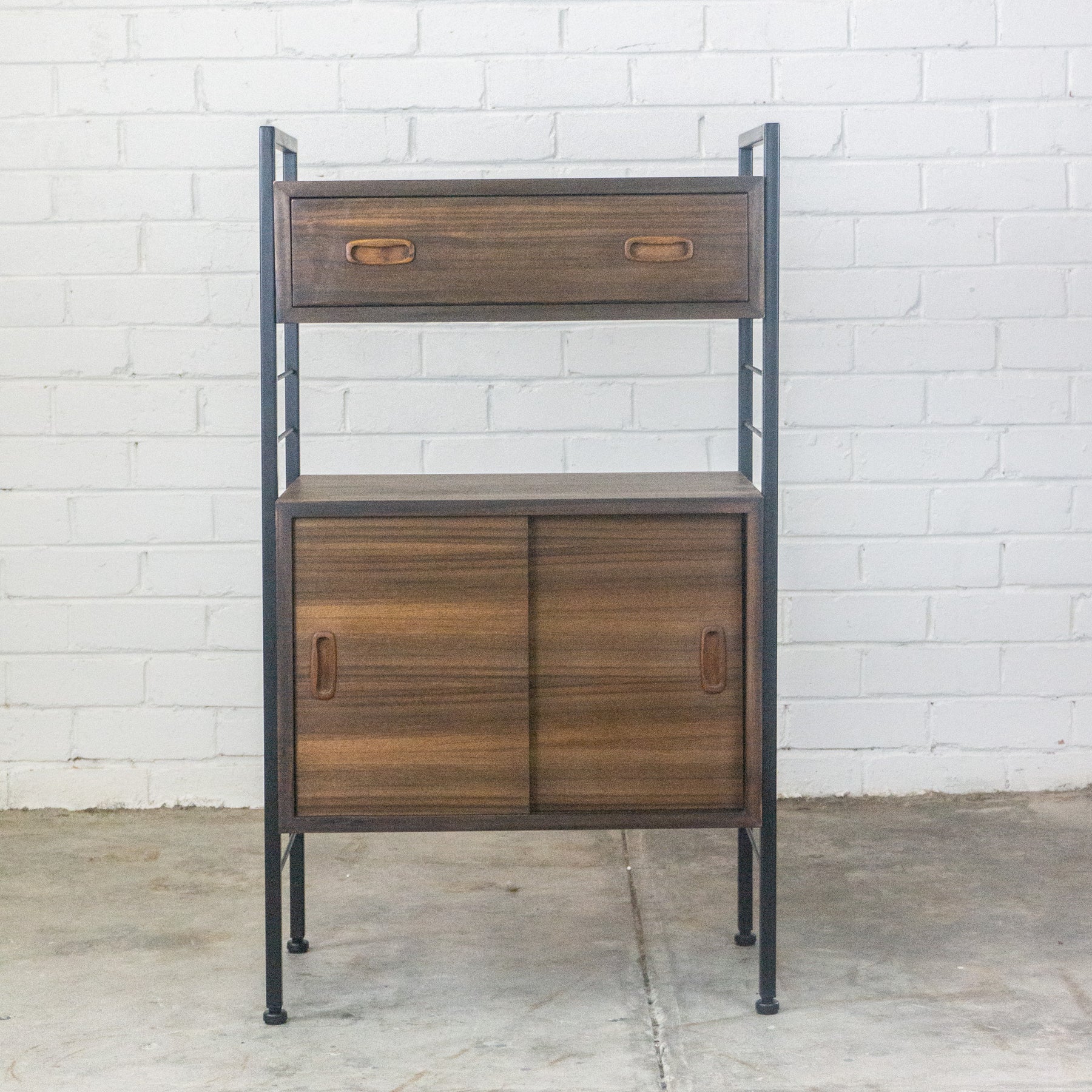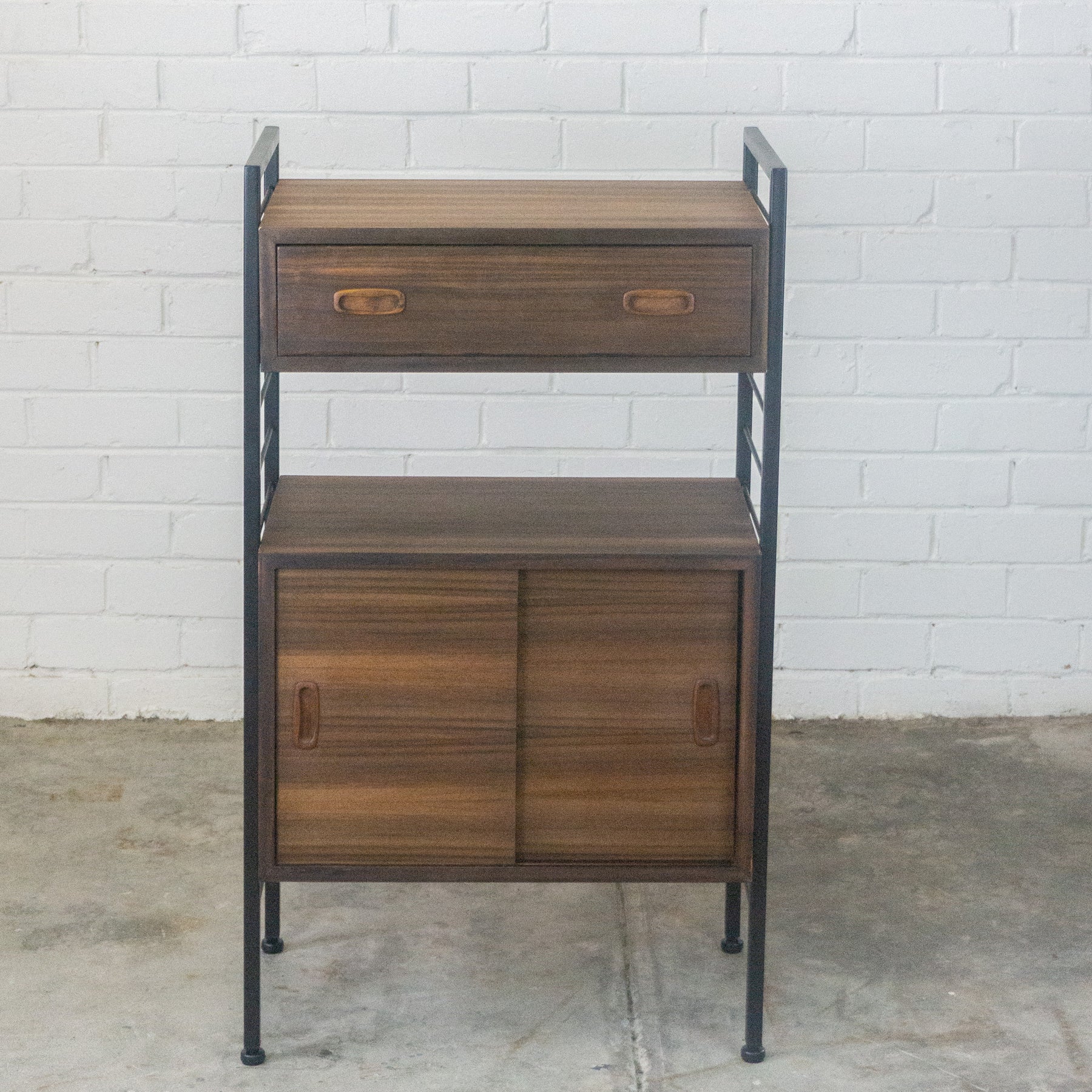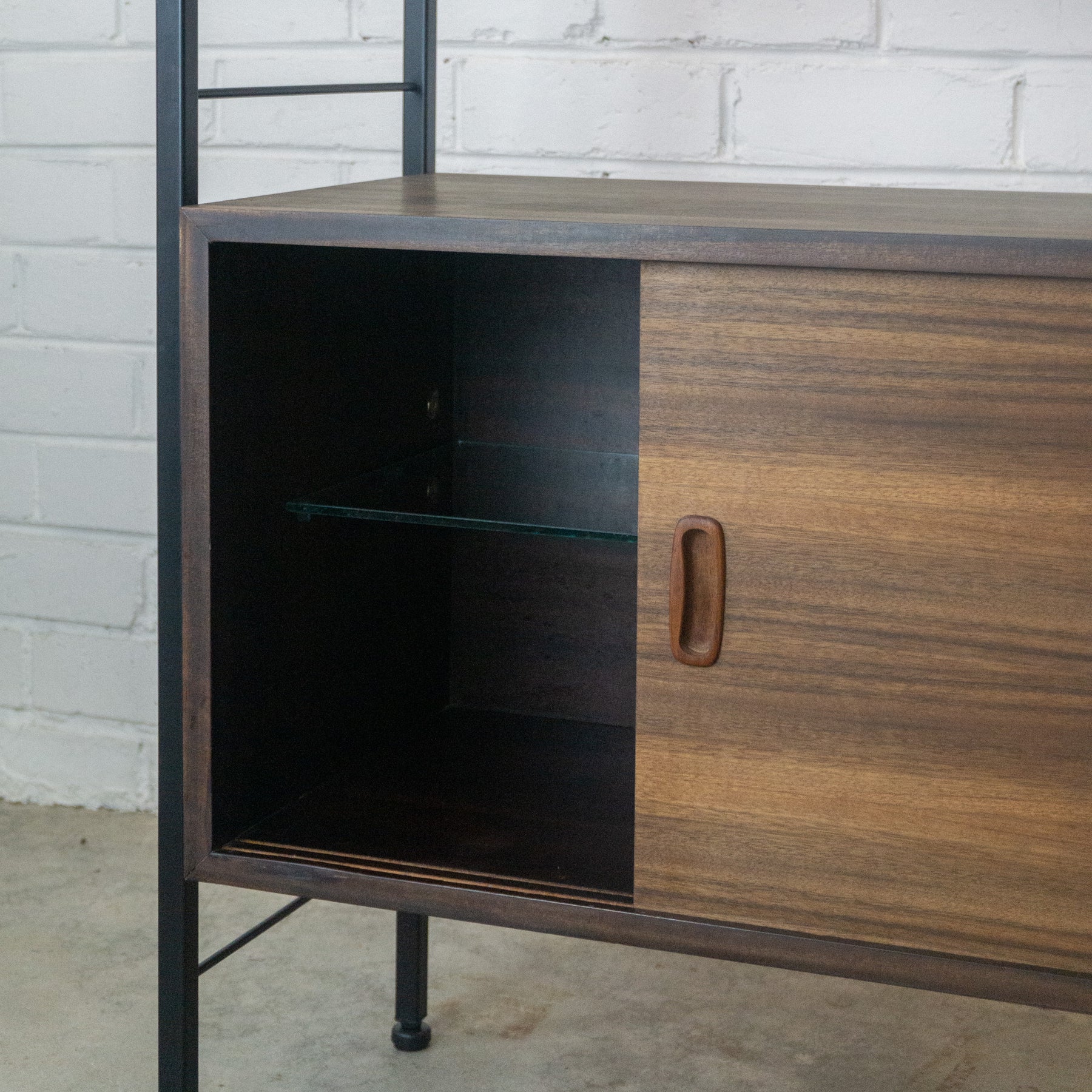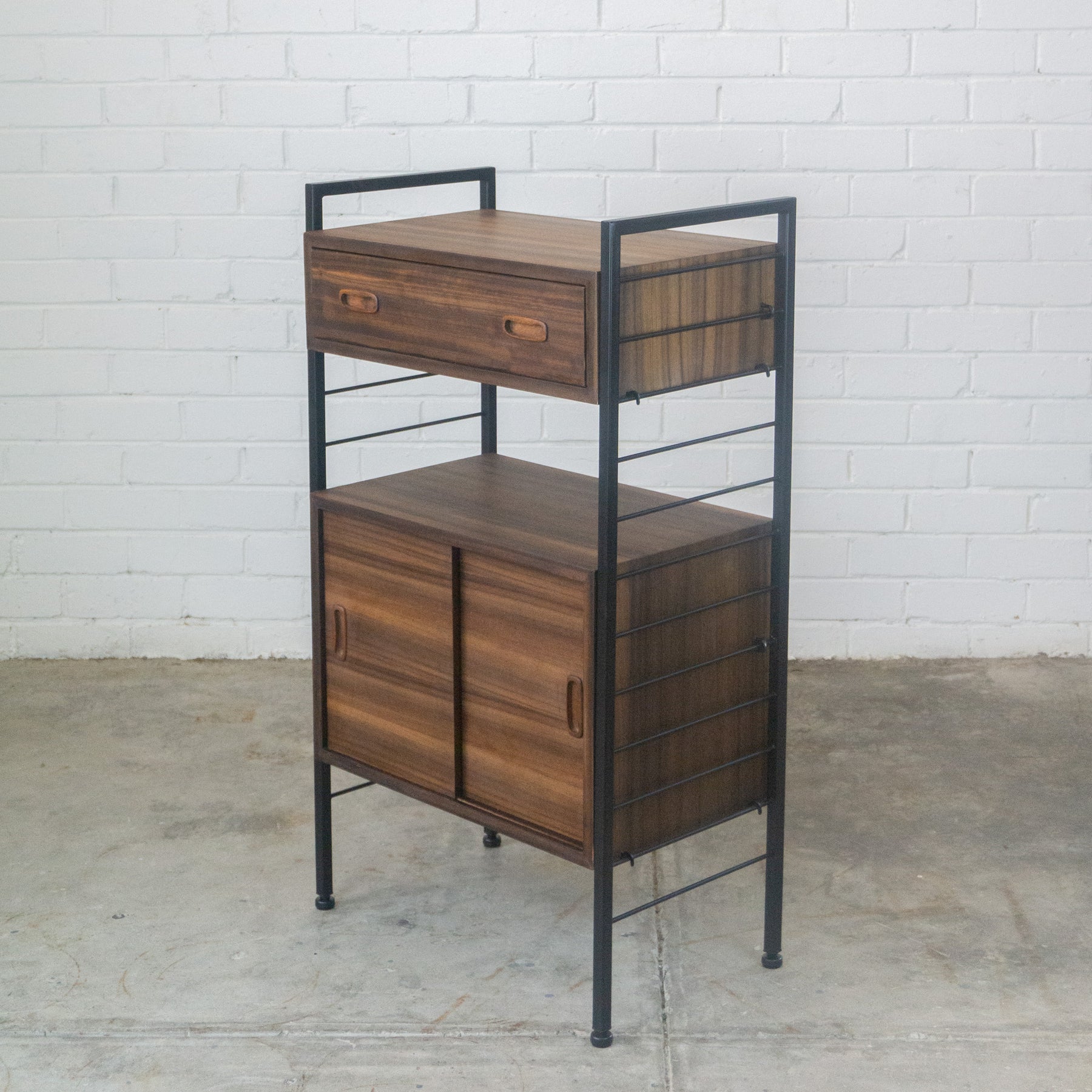 Ladderax style modular wall unit with cupboard and drawer,